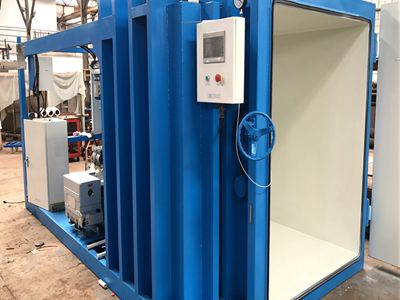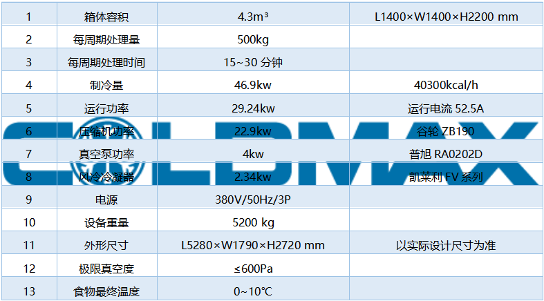 一卡板果蔬真空預冷機主要針對小型農(nóng)場的預冷加工使用;設備真空箱容積4.3m3,庫容量500kg,預冷溫度設計為0~10℃;