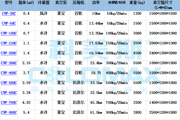 CVF-90 型號(hào)食品快速冷卻機(jī)每周期處理食品量為90kg,處理時(shí)間10~20分鐘;