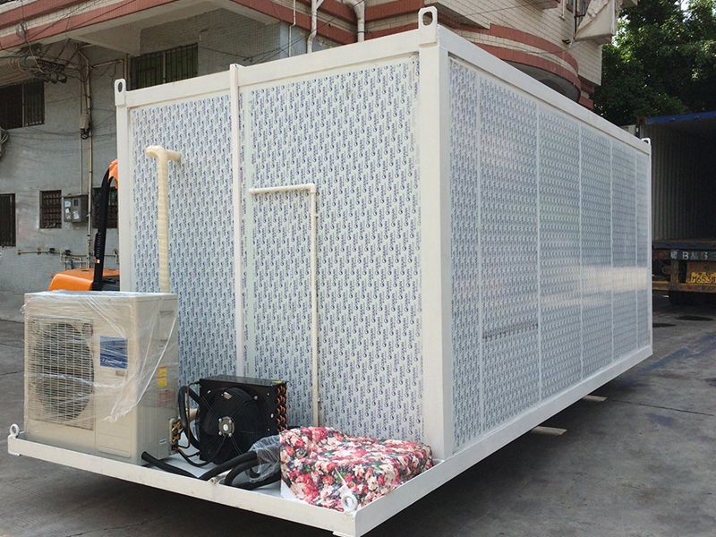 移動(dòng)式冷庫(kù)車廂頂板、前板、側(cè)板、門板均采用目前市場(chǎng)流行的新型玻璃鋼板材做廂壁內(nèi)外蒙皮,冷藏車廂的中間層為新型無(wú)氟聚氨酯發(fā)泡材料,通過(guò)高強(qiáng)度膠粘劑、螺釘與骨架連接,隔熱層厚度達(dá)75-150mm,隔熱性能較好,車廂本體緊密堅(jiān)實(shí),強(qiáng)度高,表面平整美觀、耐腐蝕、抗沖擊、耐磨損、易清洗。