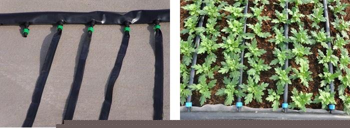 滴灌帶與輸水管按照步驟1、2安裝完畢后要打開輸水閥門進行沖洗,將系統(tǒng)及滴灌帶中存留的雜質(zhì)顆粒沖洗掉,最后將滴灌