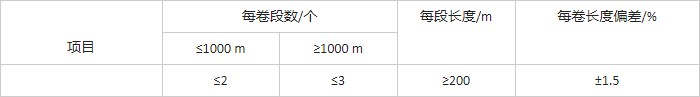 (4)每卷段數(shù)、每段長度及每卷長度偏差應符合表3規(guī)定。