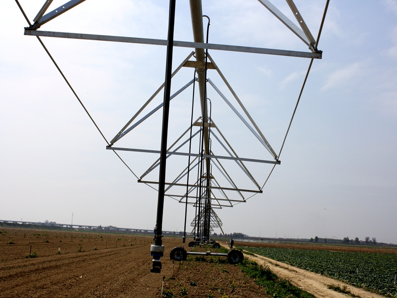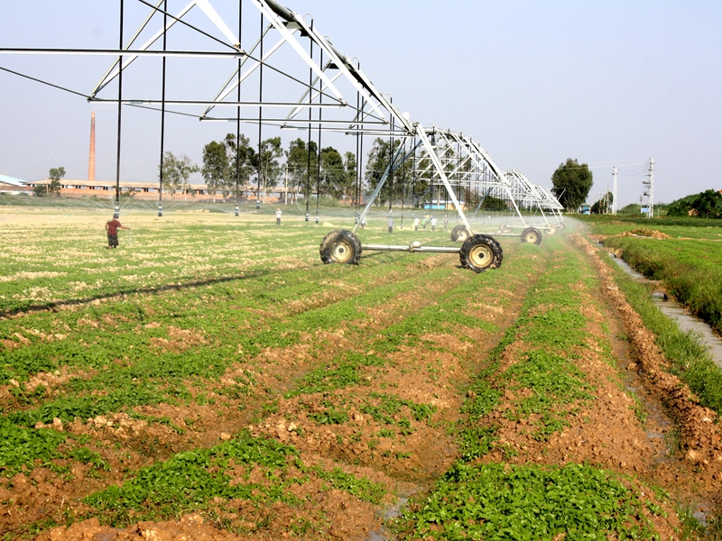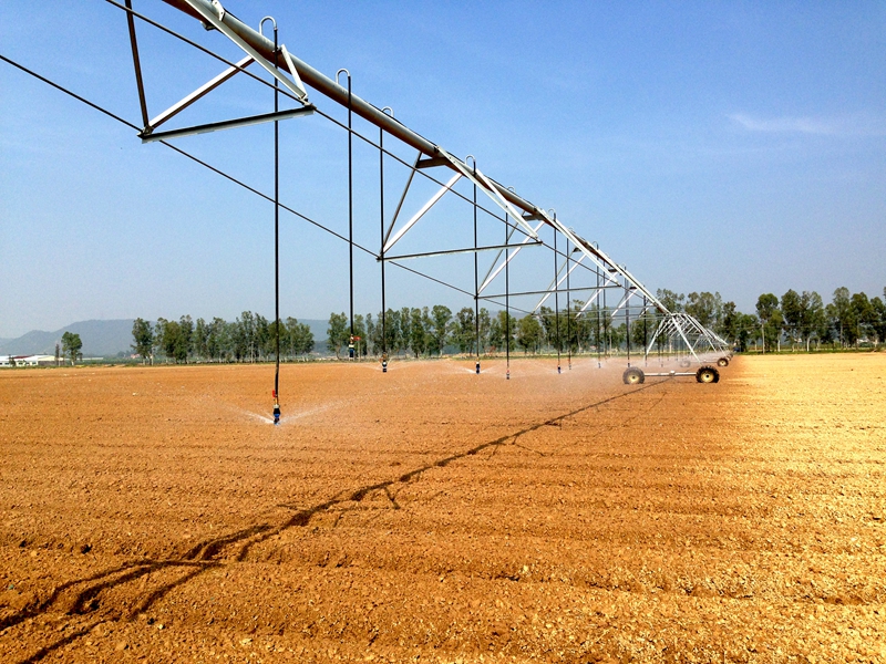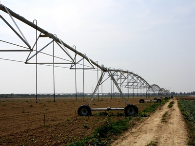 大型噴灌機(jī)與其他農(nóng)機(jī)具配套,能實(shí)現(xiàn)統(tǒng)一灌溉、統(tǒng)一耕作、統(tǒng)一播種、統(tǒng)一管理、統(tǒng)一施肥、統(tǒng)一收獲。