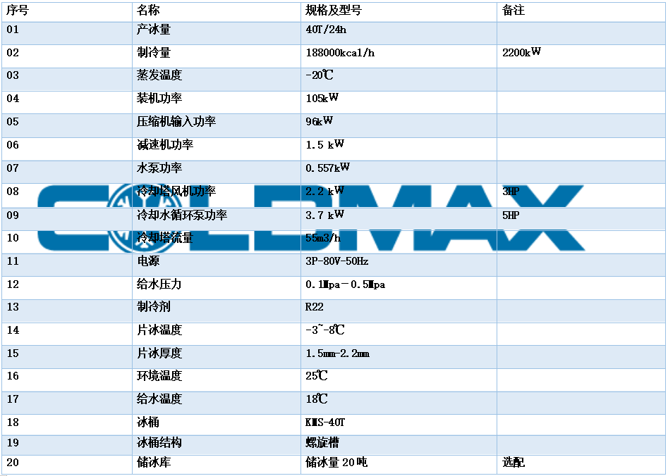 4:高效節(jié)能:優(yōu)化設(shè)計(jì)的片冰機(jī)組,保證COLDMAX內(nèi)刮式保鮮片冰機(jī)組連續(xù)性的運(yùn)行,減少能量浪費(fèi)的運(yùn)轉(zhuǎn)。采用特殊合金材料和專利加工技術(shù),確保高效熱傳導(dǎo)性能,COLDMAX片冰制冰機(jī)生產(chǎn)的片冰的冷卻表面為1750m2以上/噸。