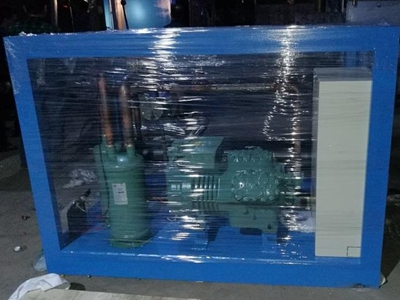 冰瓶機通常使用鹽水間接式制冷。將裝有水的塑料瓶放入鹽水池中,蓋上鹽水池蓋板,設備啟動后,制冷機組開始運行;塑料瓶中的水先于鹽水池中的鹽水凝結(jié)成冰,從而實現(xiàn)冰瓶的制作。