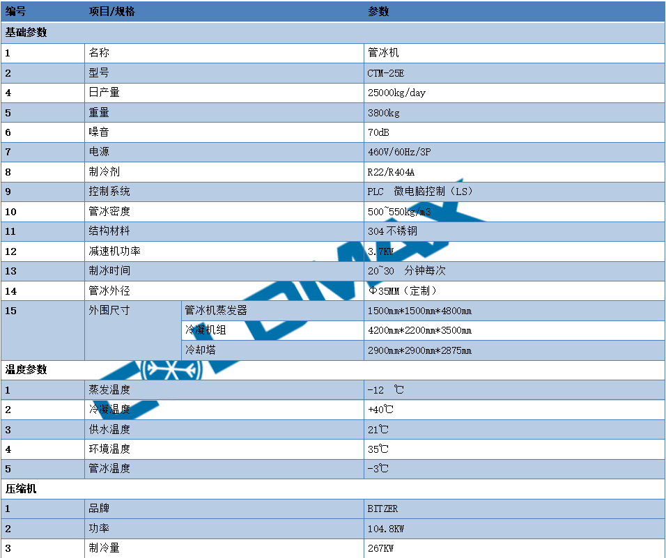 CTM-25E 日產(chǎn)25噸管冰機參數(shù):