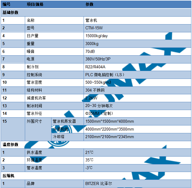 管冰機(jī)是一款生產(chǎn)圓柱型食用冰塊的制冰機(jī)。由多根不銹鋼管組成蒸發(fā)器,制冷劑在管與管之間流動,水在管內(nèi)從上往下在分水器的作用下呈螺旋狀流動,水在流動過程中凝結(jié)成冰。