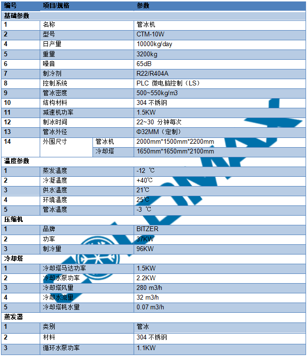 CTM-10W 管冰機(jī)10噸參數(shù):