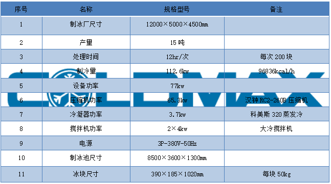 CBM-15 日產(chǎn)15噸塊冰技術參數(shù):