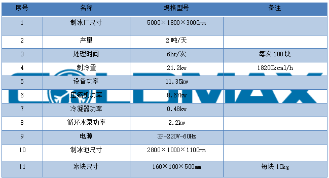 CBM-02 日產(chǎn)2.0噸塊冰技術(shù)參數(shù):