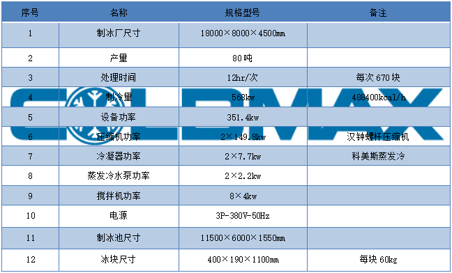 CBM-80 日產(chǎn)80噸塊冰技術(shù)參數(shù):